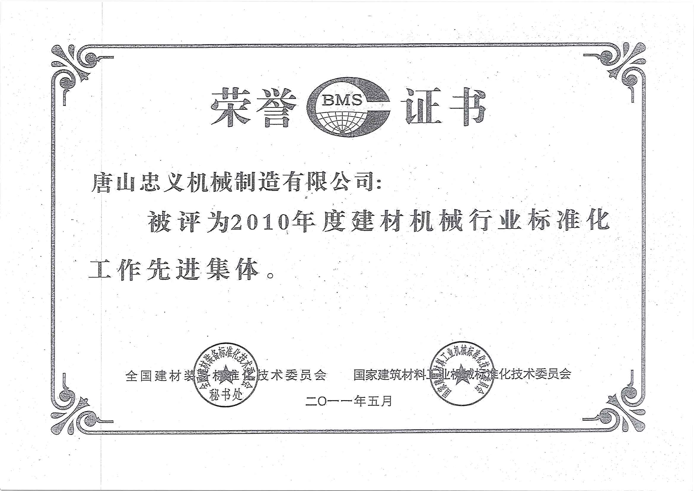 建材機械行業榮譽證書